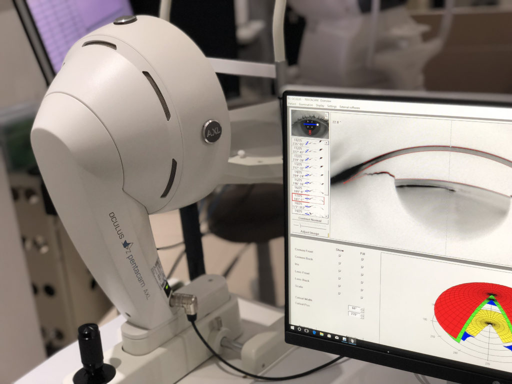 O Pentacam AXL é o padrão ouro no mundo inteiro para a análise da córnea. Há inúmeras utilidades para este aparelho que é imprescindível para a melhor avaliação pré-operatória de uma cirurgia refrativa ou catarata. O diagnóstico e acompanhamento do ceratocone ficaram mais precisos junto a uma melhor indicação e planejamento de tratamento com o auxílio dos dados obtidos pelo Pentacam AXL.